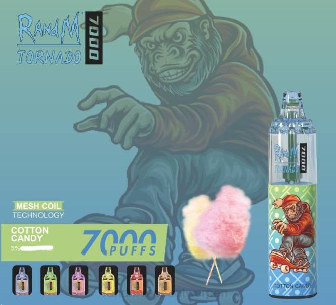 RandM Vape Kopen – RandM Tornado 7000 vape-apparaat met luchtstroomregeling 1 st suikerspin 2RNP181